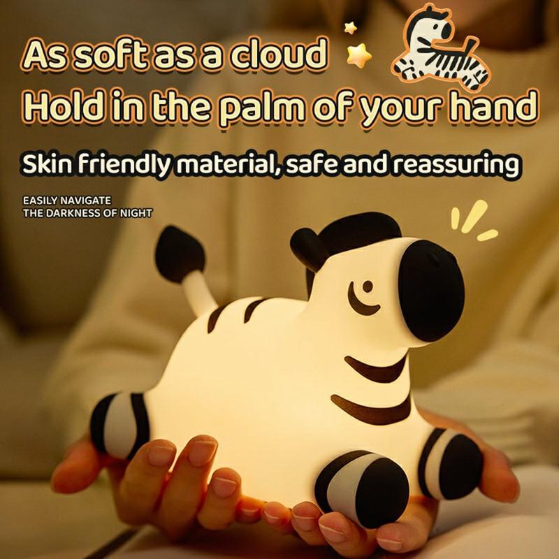 Il corpo in silicone setoso della zebra invita a stringere delicatamente, rendendola un compagno ideale per alleviare lo stress. Il materiale morbido e l'illuminazione calda e diffusa favoriscono il rilassamento, rendendola perfetta per i bambini che hanno bisogno di essere rassicurati durante la notte o per gli adulti che cercano un momento di calma dopo una lunga giornata.