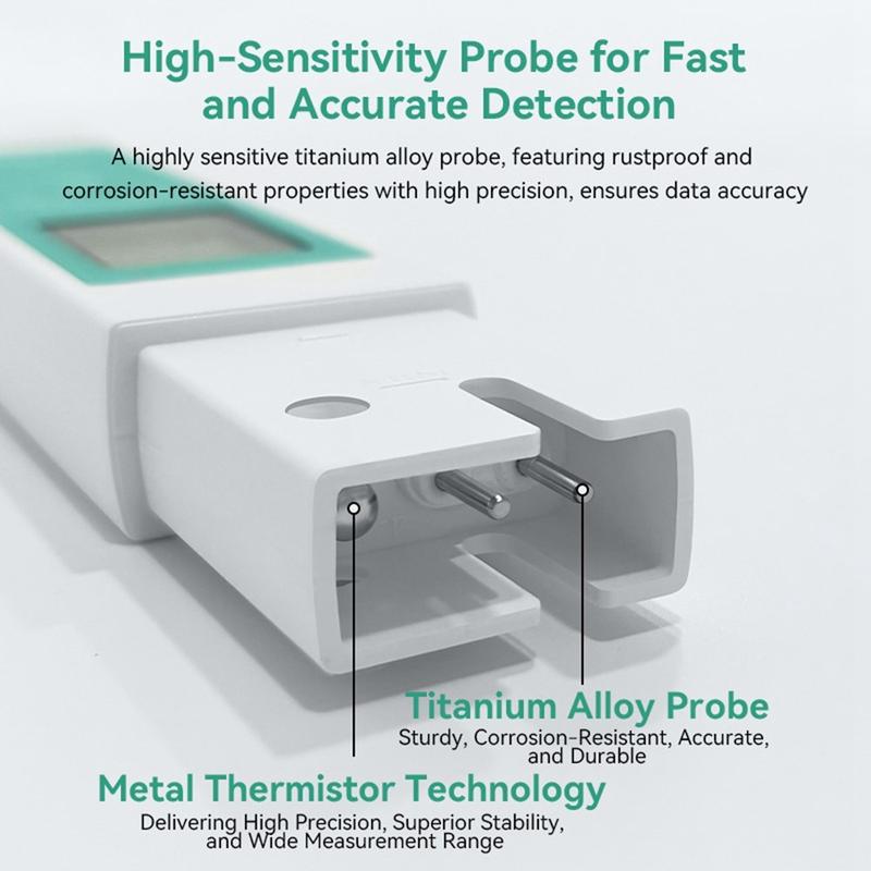 Grazie alla combinazione di test di alta precisione, interfaccia emoji intelligente, sonda in titanio resistente e design portatile, il tester di qualità dell'acqua A13 è uno strumento affidabile per garantire la sicurezza dell'acqua potabile, sempre e ovunque.