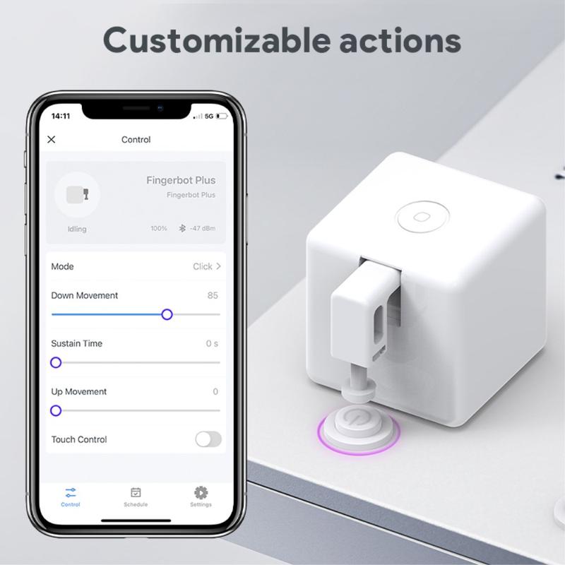 Fingerbot Plus è in grado di automatizzare praticamente qualsiasi dispositivo dotato di un pulsante fisico, dalle macchine per il caffè ai condizionatori d'aria, dagli interruttori a parete ai dispositivi elettronici da tavolo. Il suo motore di precisione e la distanza di pressione personalizzabile lo rendono adattabile a innumerevoli casi d'uso, colmando il divario tra gli elettrodomestici tradizionali e la moderna tecnologia smart-home.