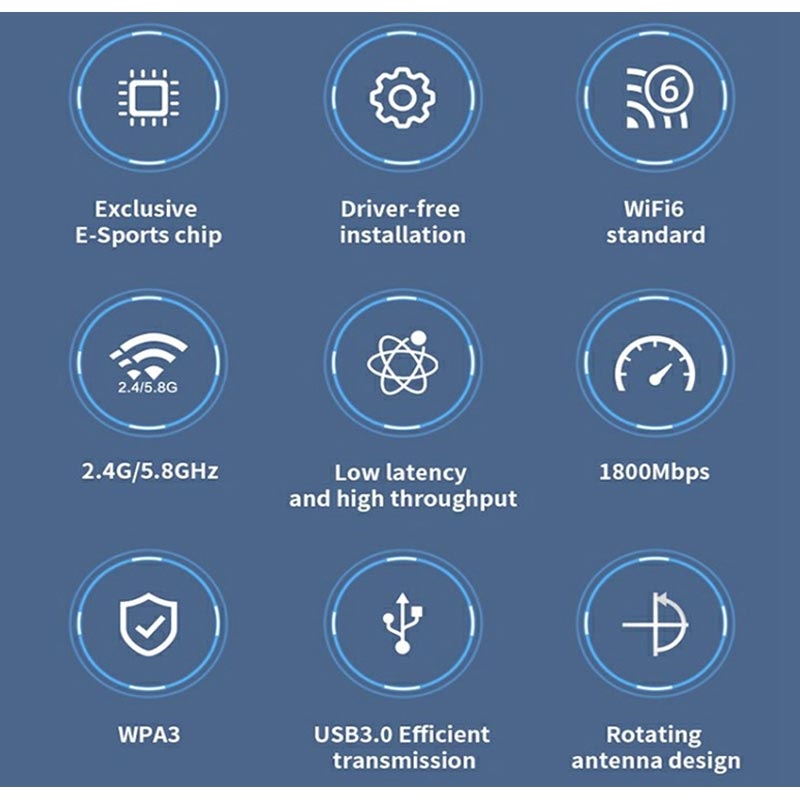 - Velocità Dual-Band 1800Mbps - Raggiunge fino a 600Mbps su 2,4GHz e 1201Mbps su 5GHz, ideale per lo streaming HD, i giochi e il trasferimento di file di grandi dimensioni.