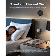 Una delle porte USB-C offre una ricarica rapida da 20W, in grado di portare un iPhone 16 al 50% in soli 28 minuti. Nonostante le sue potenti funzioni, l'adattatore rimane incredibilmente compatto - il 43% più piccolo rispetto ai modelli tradizionali - e include pin pieghevoli e retrattili per la massima portabilità. Il controllo intelligente della temperatura integrato aumenta la sicurezza, mentre la struttura da 2 pin a 2 pin garantisce prestazioni resistenti agli urti per la massima tranquillità.