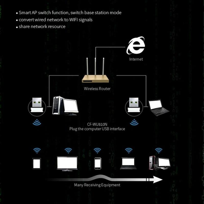 Godetevi una connettività wireless stabile ed efficiente ovunque con l'adattatore WiFi USB dual-band COMFAST CF-WU810N. Compatto, leggero e facile da installare, fornisce un aggiornamento wireless affidabile per PC desktop e portatili, supportando diversi sistemi operativi e frequenze dual-band per prestazioni ottimali.