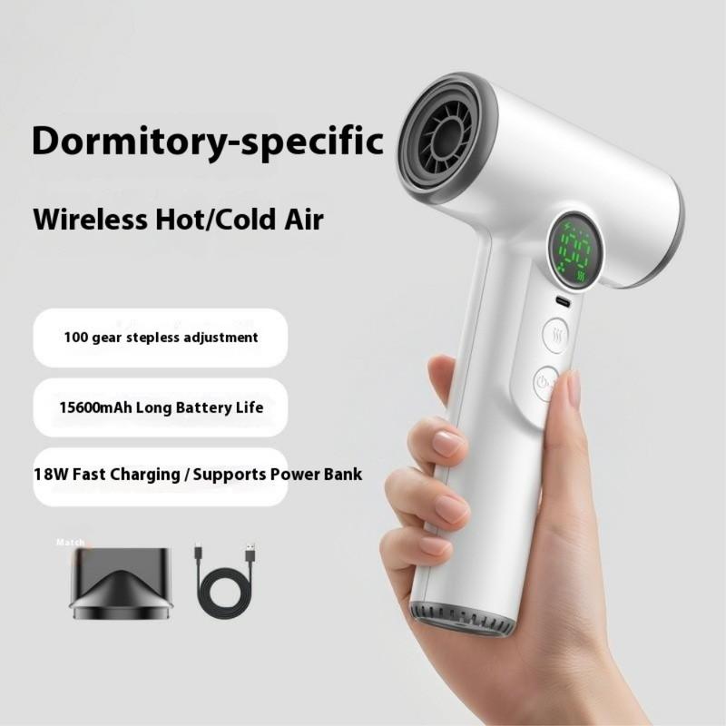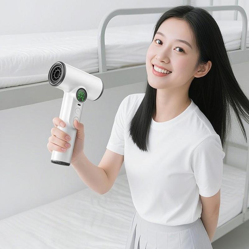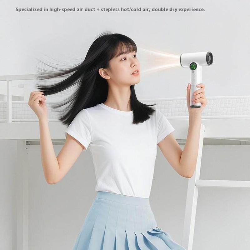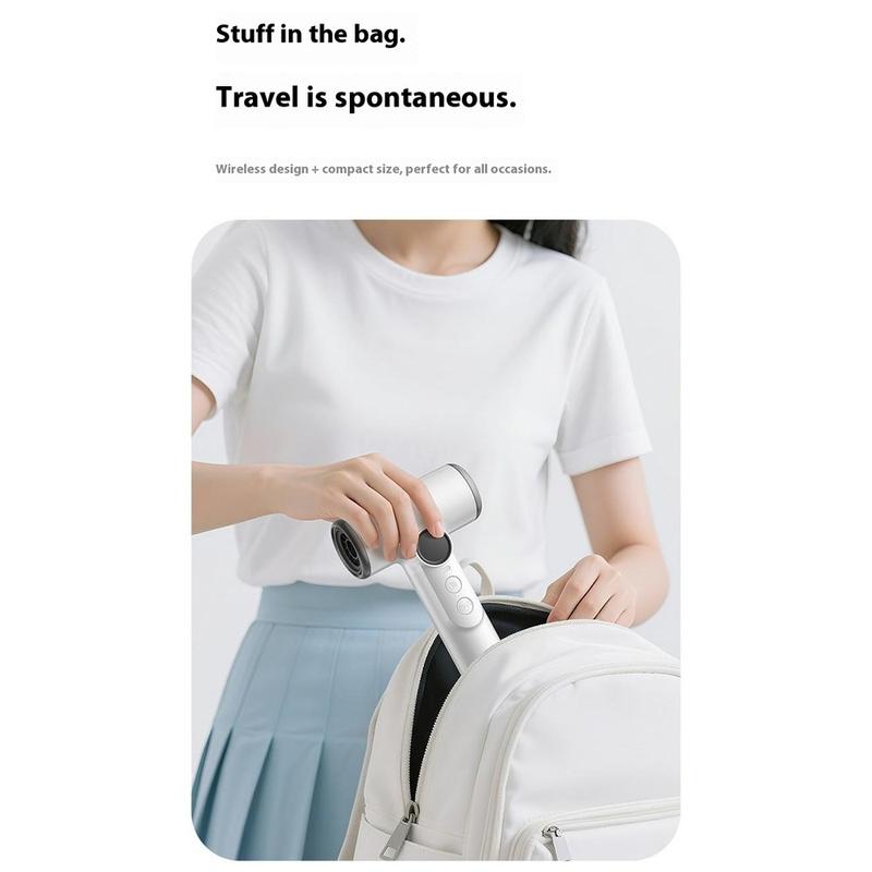 Provate la libertà di uno styling professionale ovunque con l'asciugacapelli wireless, una soluzione cordless potente e portatile per i viaggi, la vita in dormitorio e la cura del corpo in movimento. Dotato di un motore digitale ad alta velocità da 30000 giri al minuto, offre un flusso d'aria forte e costante, funzionando in modo silenzioso ed efficiente. L'avanzato controllo della velocità a 100 livelli consente di regolare con precisione il flusso d'aria e la temperatura, passando facilmente dall'aria fredda a quella calda per qualsiasi tipo di capelli o stile. Alimentato da una batteria ricaricabile da 15600 mAh, offre un'autonomia prolungata e funge anche da power bank per ricaricare altri dispositivi. Grazie alla regolazione intelligente della temperatura, alla doppia protezione contro il surriscaldamento e a un display LED intelligente, questo asciugacapelli garantisce prestazioni sicure e comodità ovunque.