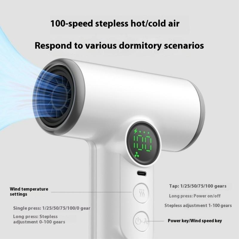 Asciugacapelli/soffiatore senza fili con 100 velocità freddo/caldo, display intelligente - 15600 mAh, motore a 30000 giri/min.