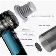 Questo aspirapolvere portatile a batteria offre un'aspirazione potente in un design compatto e portatile, che lo rende ideale per le pulizie quotidiane veloci e per le pulizie profonde. Grazie agli accessori versatili e alla ricarica USB, è perfetto per chi possiede un'auto, un animale domestico o una famiglia molto impegnata.