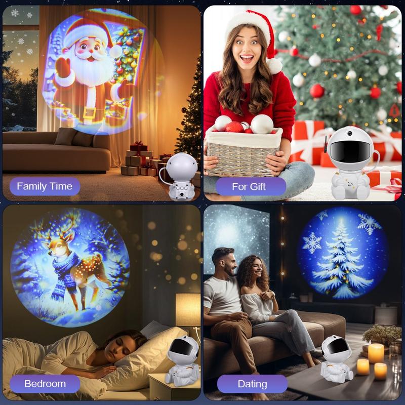 Aggiungete un tocco magico alle vostre feste con la lampada proiettore natalizia Astronaut Hugging Star. Questa lampada decorativa unica combina il design di un astronauta di ispirazione spaziale con festose proiezioni natalizie, rendendola un'aggiunta divertente e creativa all'arredamento della vostra casa. Grazie ai molteplici motivi, alla luminosità regolabile e al timer di spegnimento automatico, crea un'atmosfera accogliente e incantevole per le riunioni di famiglia, le feste o il relax a letto.