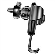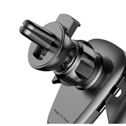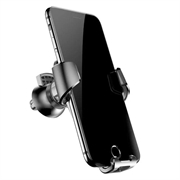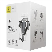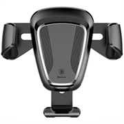 Porta telefono gravitazionale Baseus, montato sulla griglia di ventilazione dell'auto. La gamma di regolazione del supporto è di 360 gradi. Progettato per telefoni di larghezza compresa tra 63 e 88 cm. I morsetti laterali del supporto si adattano automaticamente alla larghezza del telefono. Il binario di ritaglio consente di collegare il caricabatterie.