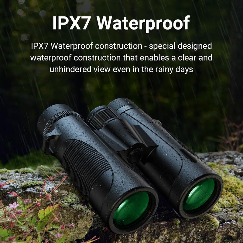 - Il binocolo IPX7 è in grado di resistere all'immersione accidentale e alla pioggia battente