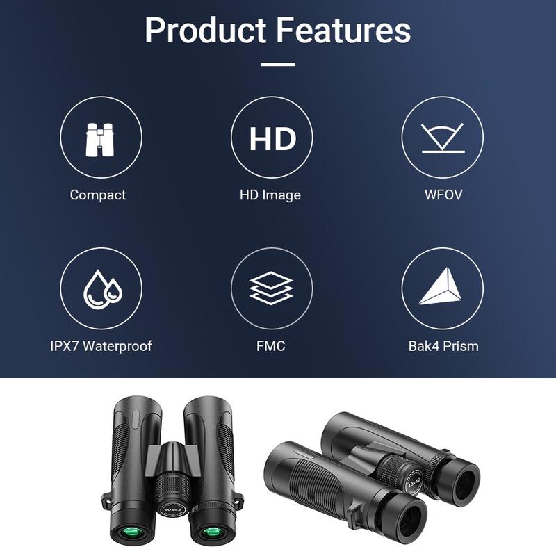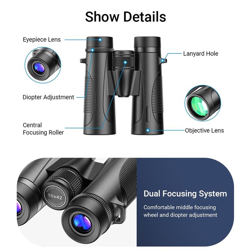 Binocolo impermeabile Apexel 10x42 HD - FMC Multi-Coated, Prisma BAK4, Visione in condizioni di scarsa luminosità per birdwatching, caccia e uso all'aperto