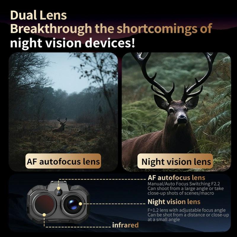 Il binocolo per visione notturna NV109 è uno strumento di livello professionale progettato per gli appassionati di outdoor, i cacciatori, gli osservatori della fauna selvatica e i fotografi notturni. Dotato di un sistema a doppia lente, di una potente visione notturna a infrarossi e di uno schermo IPS da 2,0 pollici, questo binocolo offre una chiarezza eccezionale sia di giorno che di notte. Con video da 2,7K, foto da 64MP e zoom fino a 28×, è perfetto per catturare ogni dettaglio nella natura.
