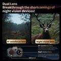 - Tecnologia a doppia lente: Combina un obiettivo per la visione notturna a lunga focalizzazione con un obiettivo grandangolare AF per riprese a distanza ravvicinata e a lunga distanza.