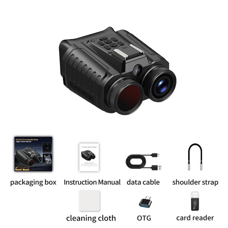 Binocolo per la visione notturna NV109 con doppio obiettivo, registrazione video 2.7K, foto da 64MP e scheda da 32GB - Telecamera da caccia per esterni con schermo IPS da 2,0".