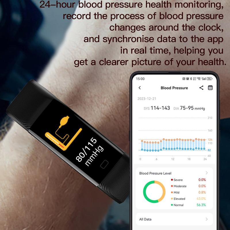 Il braccialetto intelligente F71 offre un'esperienza di monitoraggio della salute all-in-one con frequenza cardiaca, ossigeno nel sangue (SpO₂), pressione sanguigna e temperatura corporea. Perfetto per tenere sotto controllo il proprio benessere durante la giornata.
