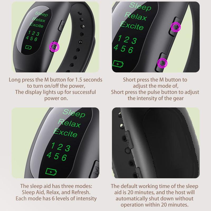Braccialetto di aiuto al sonno a microcorrente CES - Dispositivo per il sollievo dall'insonnia a 3 modalità con timer automatico