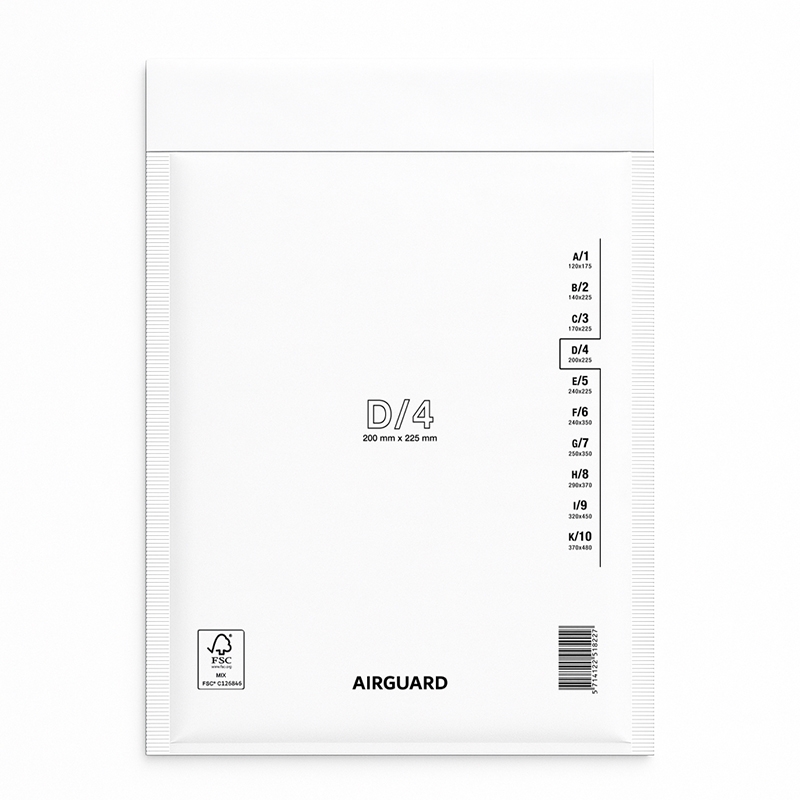 Busta imbottita a bolle d'aria AirGuard D4 - Dimensioni interne: 180x265mm, Dimensioni esterne: 200x275 mm