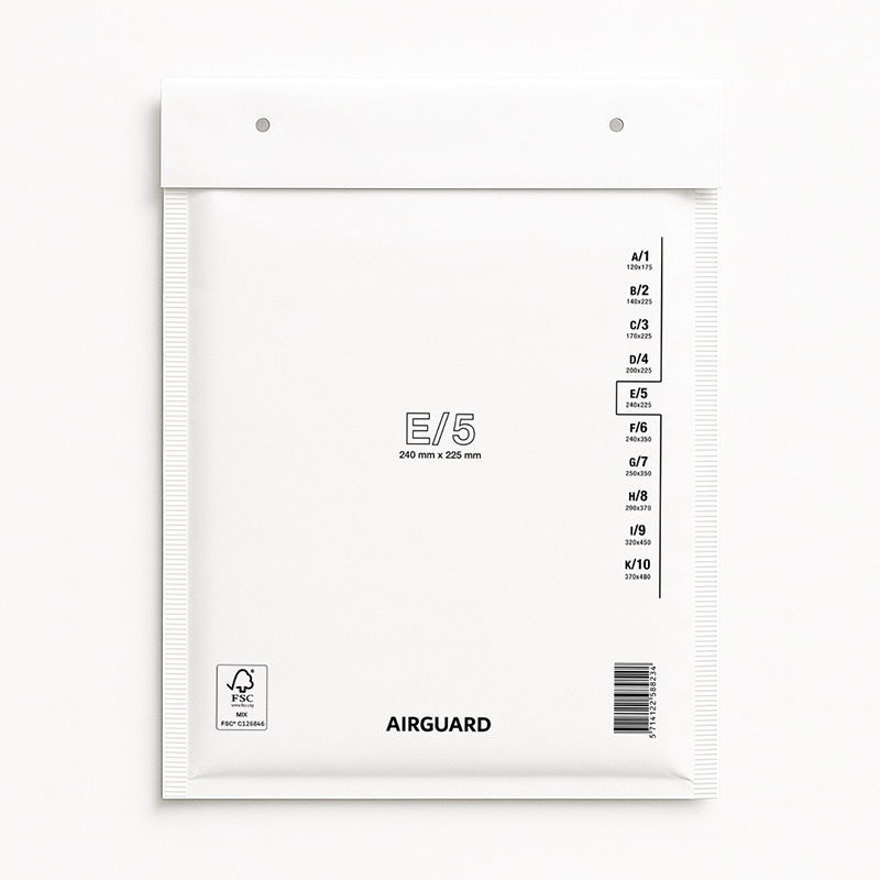 Busta imbottita a bolle d'aria AirGuard E5 - Dimensioni interne: 220x265 mm, dimensioni esterne: 240x275 mm