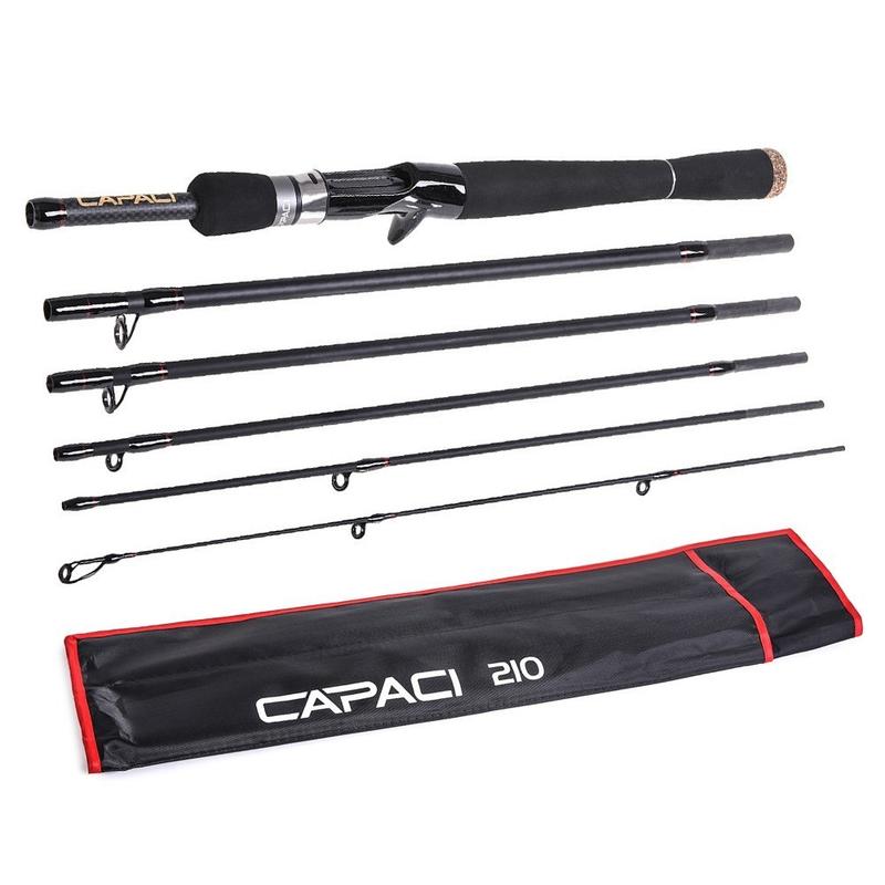 Capici Canna da pesca da viaggio in fibra di carbonio 2,1 m - Canna a mano leggera a 6 sezioni