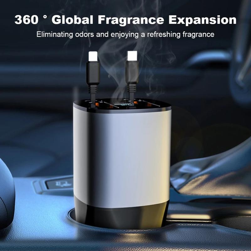 Il caricatore rapido PT-17 Car PD 100W è l'ultima soluzione di ricarica in auto, che combina velocità, convenienza e comfort. Grazie alla potente ricarica rapida PD da 100 W, alle porte multiple e ai cavi integrati retrattili, garantisce una ricarica efficiente per smartphone, tablet e laptop in movimento. Il display a LED integrato monitora costantemente la tensione della batteria dell'auto per una maggiore sicurezza, mentre il pacchetto di aromaterapia integrato offre una fragranza rinfrescante durante ogni viaggio. Progettato per veicoli da 12-24 V, questo caricabatterie intelligente è perfetto per auto, SUV e camion.
