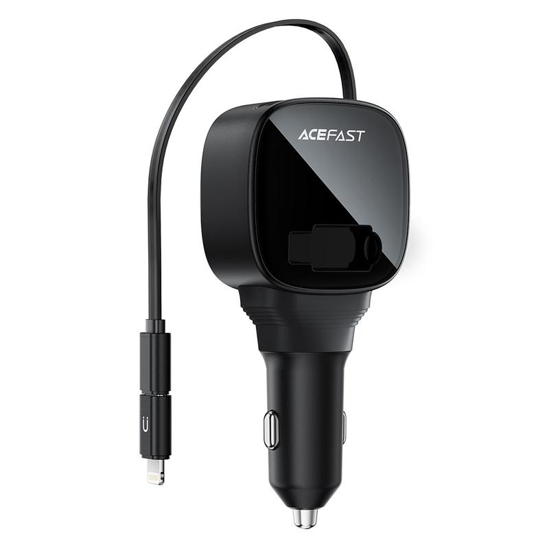 Caricabatterie da auto veloce Acefast B17 95W - USB-C/USB-A con display a LED e cavo retrattile