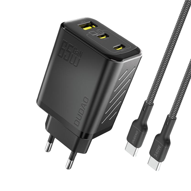Il caricatore da parete Dudao A29C 65W GaN è una soluzione di ricarica potente e di nuova generazione, progettata per gli utenti che necessitano di un'alimentazione rapida, efficiente e affidabile per più dispositivi contemporaneamente. Costruito con l'avanzata tecnologia GaN (Nitruro di Gallio), offre una maggiore efficienza con una minore generazione di calore in un formato compatto e facile da trasportare. Con due porte USB-C e una porta USB-A, l'A29C può caricare contemporaneamente smartphone, tablet, laptop e accessori senza sacrificare le prestazioni. Supportando gli standard di ricarica rapida PD e QC, questo caricabatterie garantisce un'erogazione di energia rapida e sicura per un'ampia gamma di dispositivi moderni. È incluso un resistente cavo da USB-C a USB-C da 1 m, dotato di un chip eMarker integrato per una gestione ottimale della corrente e un trasferimento affidabile dei dati.