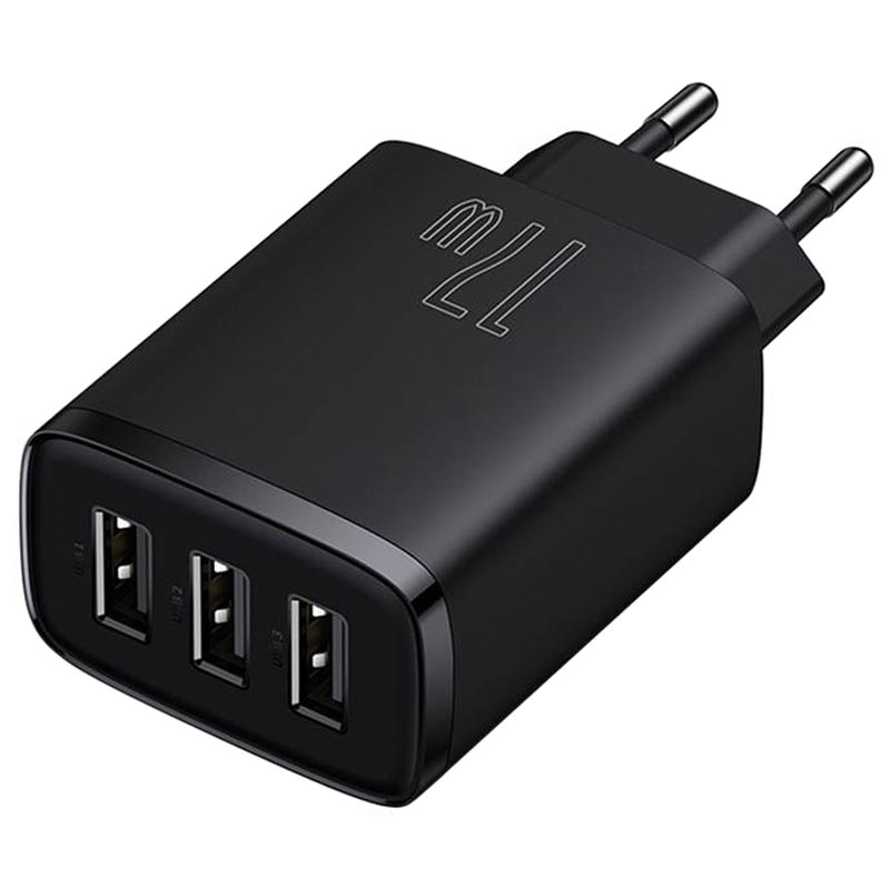 Baseus Compact Quick Charger, 3x USB, 17W (Nero)