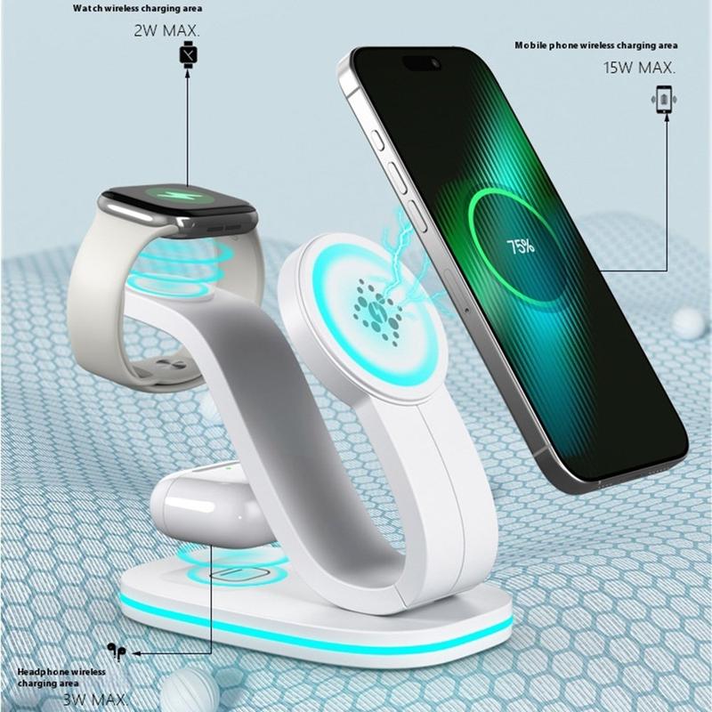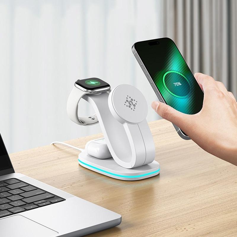 B-28 Caricabatterie wireless 3 in 1 con luce notturna: alimenta telefono, orologio e auricolari in un unico punto