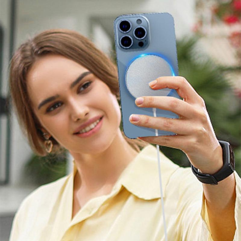 Il caricatore wireless compatibile con MagSafe combina forma e funzione, offrendo un preciso allineamento magnetico, una potente ricarica da 15W e un'eleganza minimalista. Mantiene i vostri dispositivi carichi e il vostro spazio pulito, il tutto con un aspetto di alta qualità.