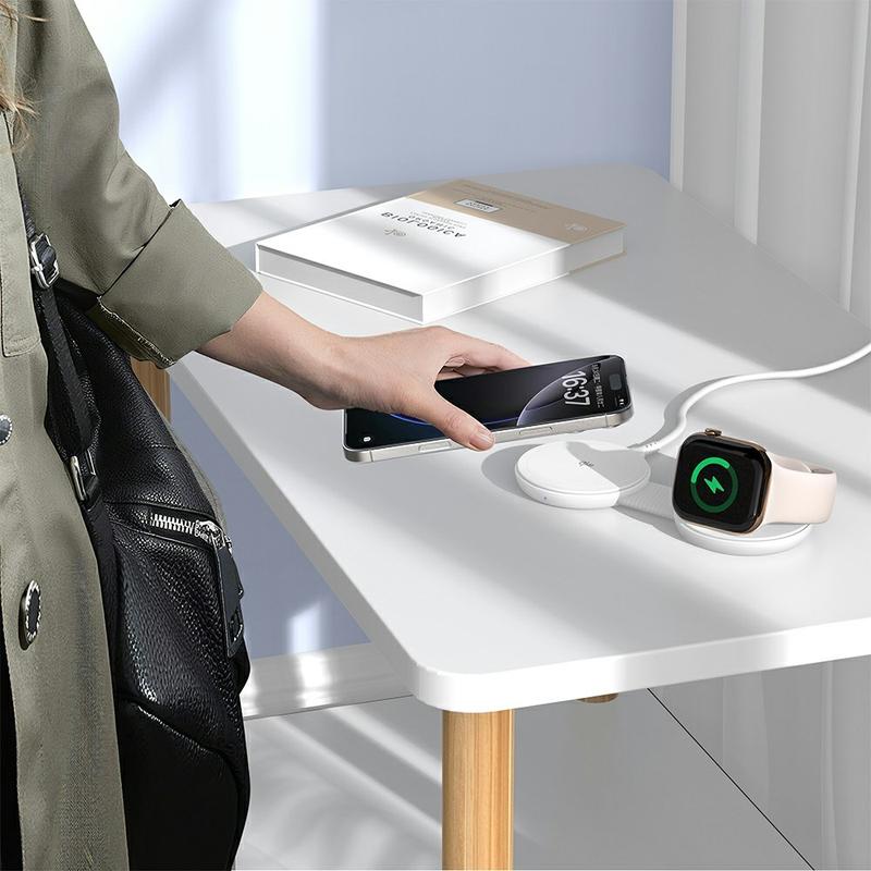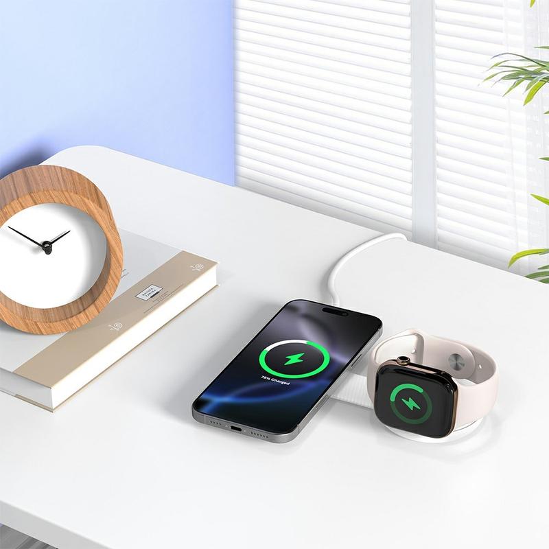 Ricarica più dispositivi contemporaneamente con il pad di ricarica principale da 25 W e un modulo di ricarica secondario da 5 W per auricolari o smartwatch. Perfetto per una configurazione ordinata sulla scrivania, in viaggio o sul comodino.