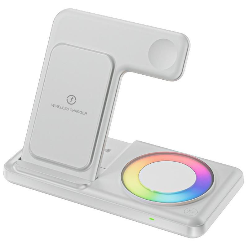 Caricabatterie wireless pieghevole 4 in 1 Q50D - Stazione di ricarica rapida da 15W con luce ambientale RGB