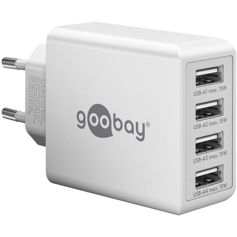 Caricatore da muro Goobay 30W 4x USB-A - Adattatore da muro a 4 porte con rilevamento intelligente della ricarica