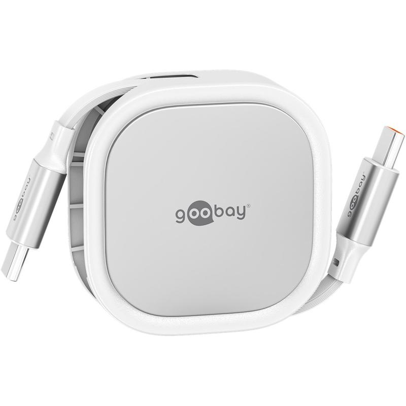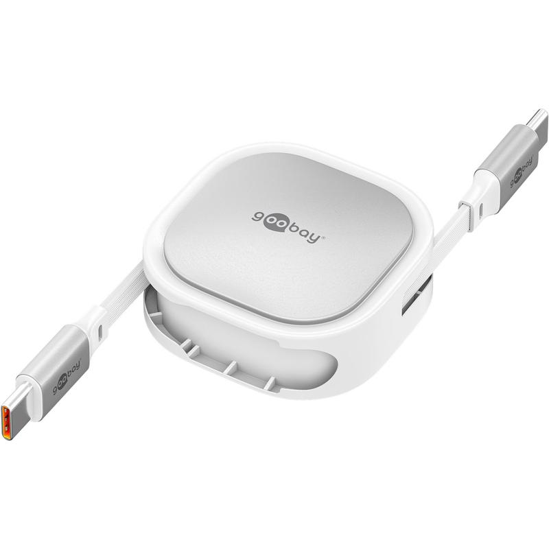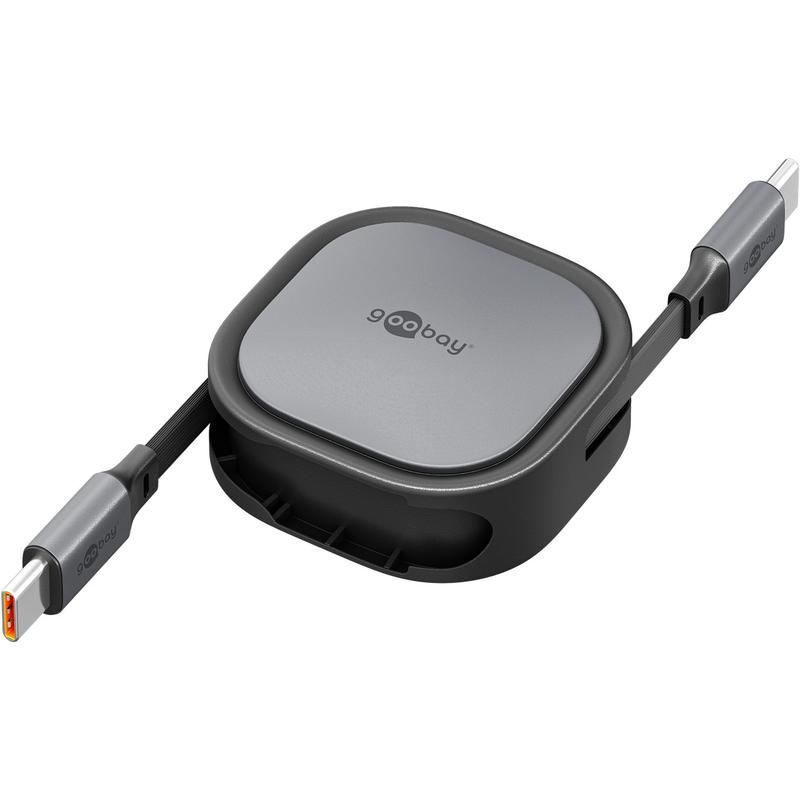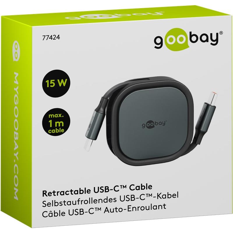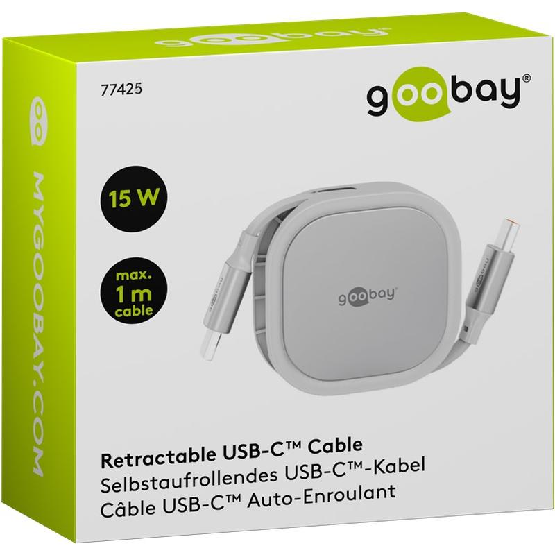 Cavo USB-C retrattile di Goobay - Cavo di ricarica piatto da 1m con potenza di 15W e meccanismo di riavvolgimento automatico