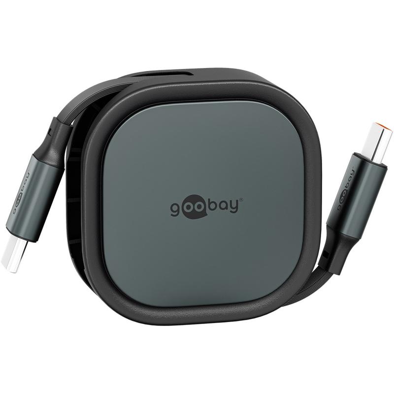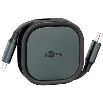Cavo USB-C retrattile di Goobay - Cavo di ricarica piatto da 1m con potenza di 15W e meccanismo di riavvolgimento automatico