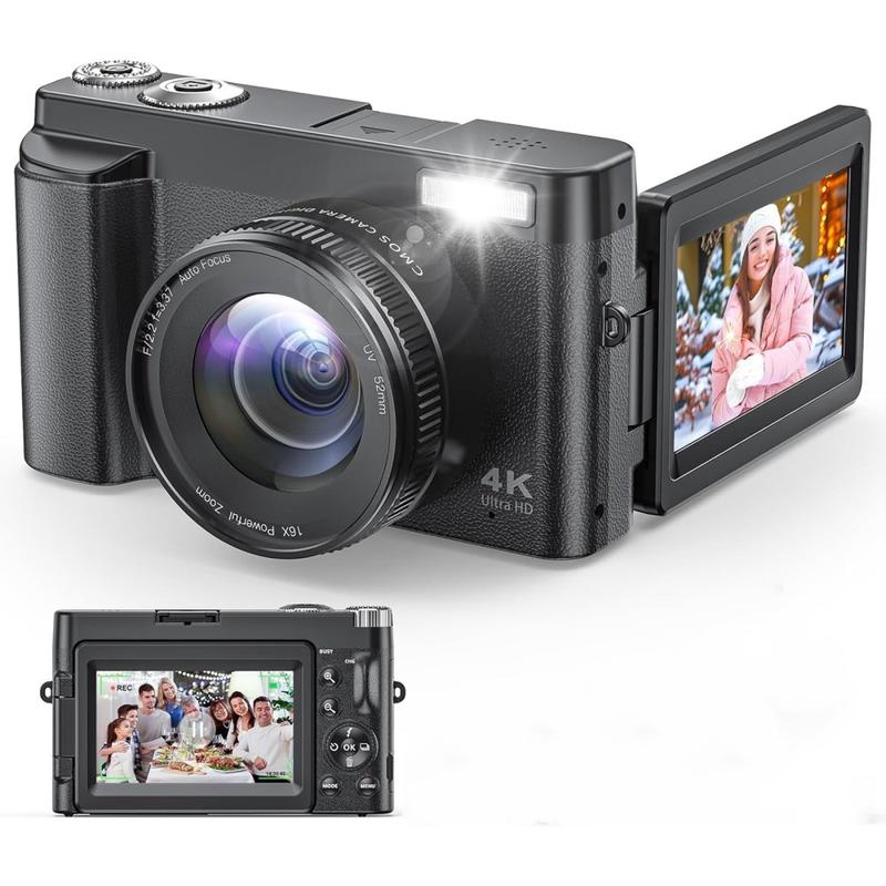 CD01 Fotocamera digitale 4K con schermo ribaltabile da 3,0 pollici - Fotocamera per fotografia e vlogging con zoom 16X e scheda di memoria da 64GB