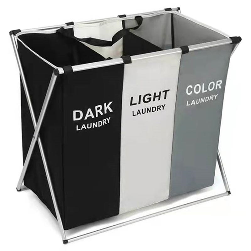 Questo cesto pieghevole per il bucato a 3 celle aiuta a organizzare e separare i vestiti senza sforzo. Con tre scomparti etichettati e un robusto telaio in alluminio, mantiene la biancheria sporca ordinata e ordinata, aggiungendo un look pulito e moderno alla vostra casa.