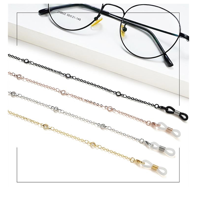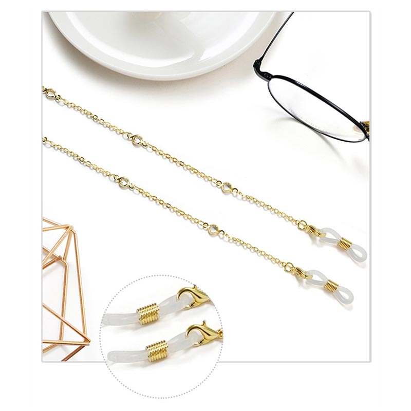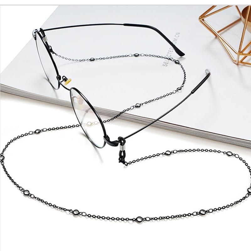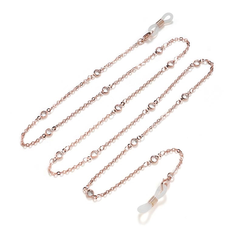 Semplice cinturino a catena per occhiali - estremità in gomma regolabili e anelli decorativi