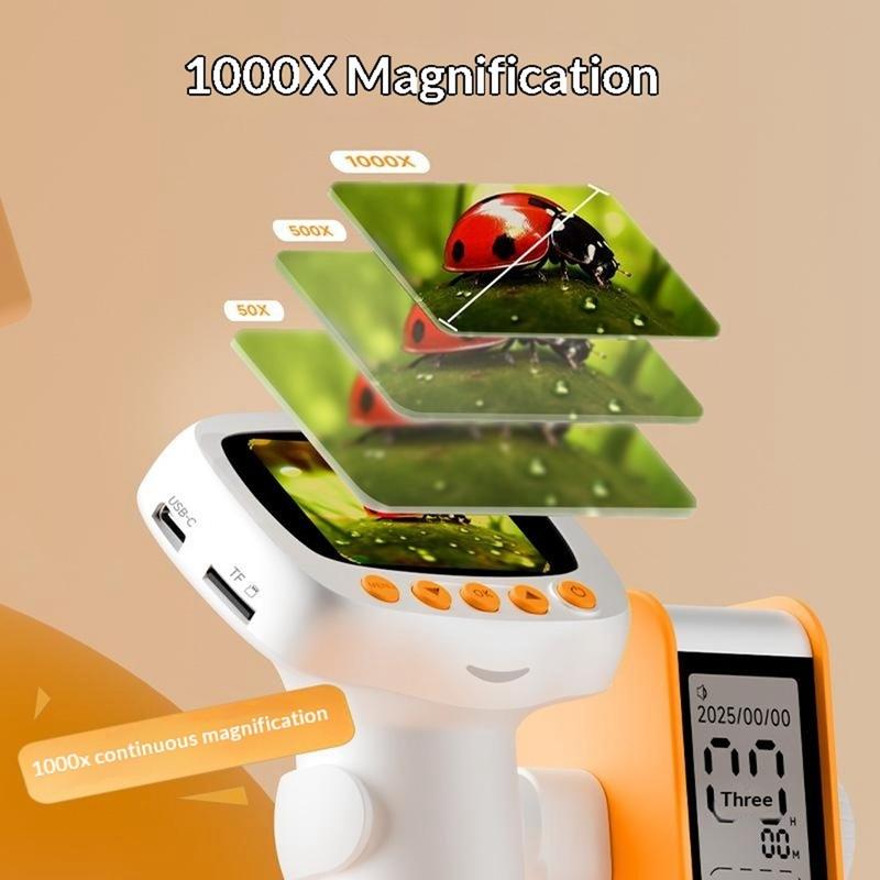 Il microscopio digitale CM5 da 2 pollici HD è uno strumento versatile progettato per l'osservazione dettagliata, la documentazione e l'esplorazione didattica. Dotato di un chiaro display ad alta definizione da 2 pollici e di un ingrandimento fino a 1000x, consente di osservare texture complesse, campioni biologici, oggetti elettronici, minerali e altro ancora. Grazie alla doppia modalità di funzionamento a mano e da tavolo, alla regolazione dell'altezza e all'acquisizione di foto/video integrata, è ideale per studenti, hobbisti, tecnici e professionisti.