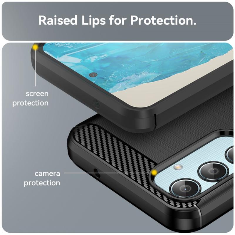 La custodia in TPU spazzolato protegge adeguatamente il tuo Samsung Galaxy M35 dandogli un grande stile, grazie al suo motivo in fibra di carbonio sul retro. La custodia garantisce anche il surriscaldamento quando si utilizza il Samsung Galaxy M35, grazie al suo design di dissipazione del calore.