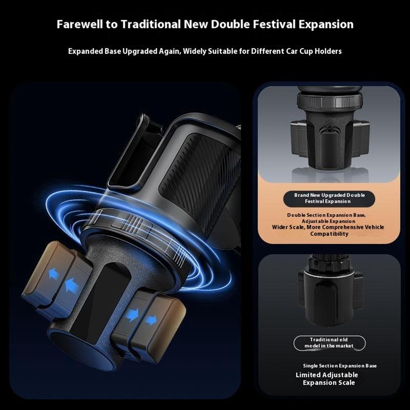 - Base espandibile a doppio stadio: Il sistema Twist-to-lock assicura un'aderenza perfetta alla maggior parte dei portabicchieri dell'auto per una maggiore stabilità.