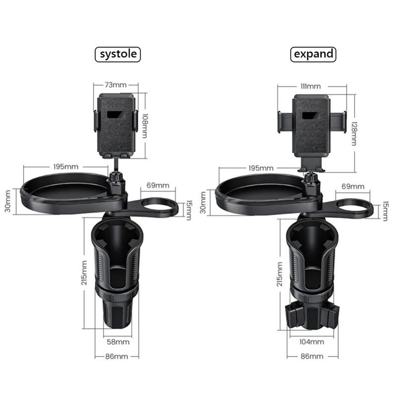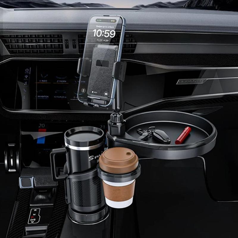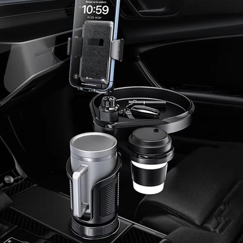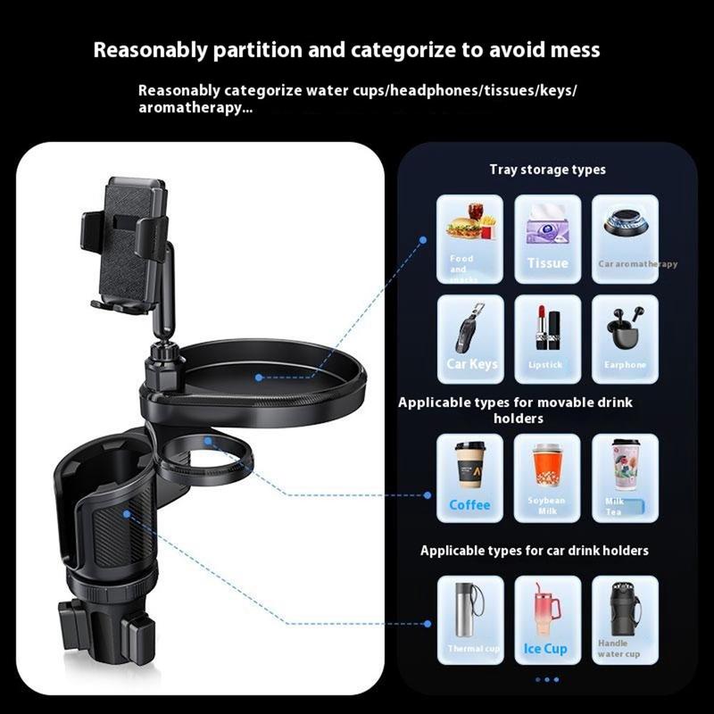 CP242 Vassoio di espansione 4-in-1 per portabicchieri da auto - Supporto universale per telefono, supporto per bicchieri e vassoio girevole