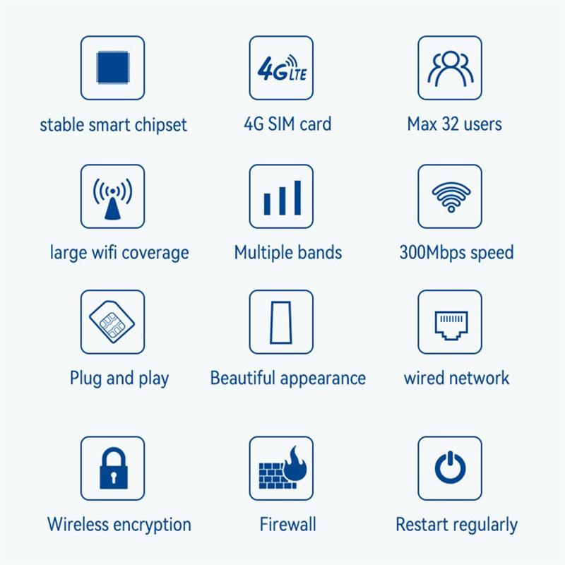 Convertite il vostro segnale 4G in un hotspot Wi-Fi con un raggio di copertura di 20-30 metri. Il router supporta fino a 32 dispositivi contemporaneamente, rendendolo ideale per famiglie, piccoli uffici e spazi condivisi.