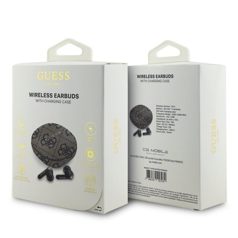 Godetevi la perfetta combinazione di stile, comfort e suono superiore con le cuffie wireless Guess 4G Script Logo ENC TWS. Caratterizzati dall'elegante design del logo Guess 4G Script, questi auricolari wireless offrono prestazioni audio di alto livello, connettività senza sforzo e un'estetica lussuosa, ideale per la musica, i viaggi o la comunicazione quotidiana.