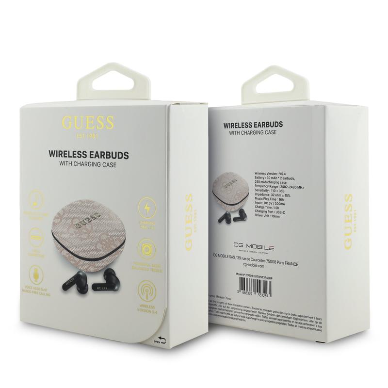 Cuffie True Wireless Guess 4G Script Logo ENC - Auricolari Bluetooth 5.4 con custodia di ricarica e riduzione del rumore