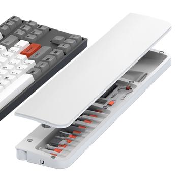 All'interno del poggiapolsi si trova un kit completo di 22 strumenti per la pulizia di tastiere, auricolari, porte di ricarica del telefono, obiettivi di fotocamere, interruttori e altri dispositivi elettronici. Ogni strumento ha un proprio posto, per garantire una facile organizzazione e un rapido accesso.