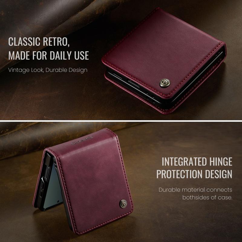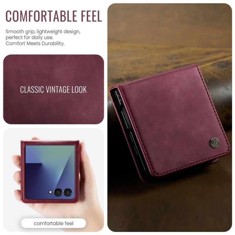 Caseme 033 Custodia a portafoglio in pelle di vitello con blocco RFID e funzione stand per Samsung Galaxy Z Flip7