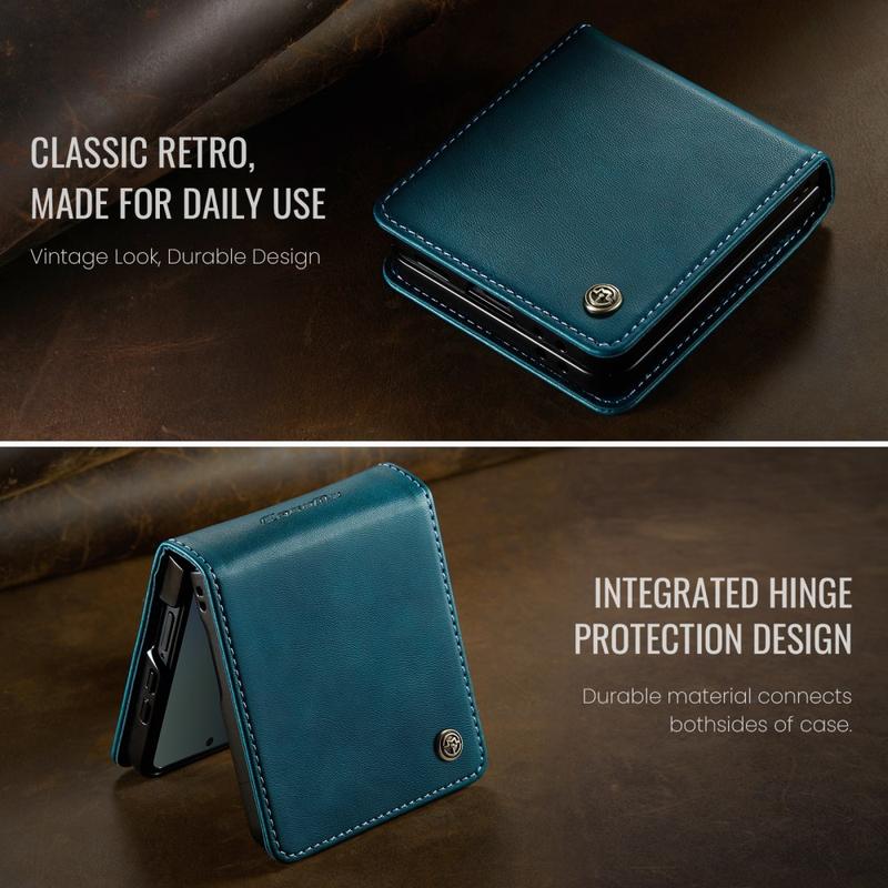 Caseme 033 Custodia a portafoglio in pelle di vitello con blocco RFID e funzione stand per Samsung Galaxy Z Flip7