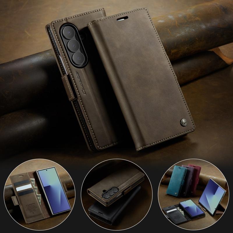 La custodia a portafoglio CASEME serie 033 per Samsung Galaxy Z Fold7 è realizzata in poliuretano con texture di vitello e TPU, per offrire una protezione completa contro graffi, urti e usura quotidiana, mantenendo un look elegante e di qualità.
