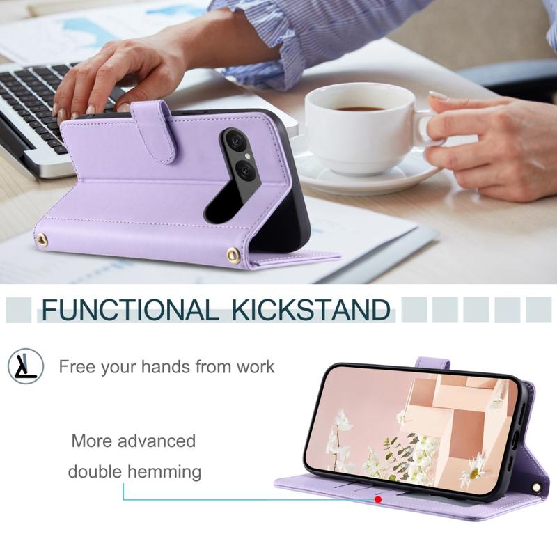 Aggiungete eleganza e funzionalità al vostro trasporto quotidiano con la custodia a portafoglio Luxury Quilted per Sony Xperia 10 VII. Progettata per coloro che apprezzano sia la moda che la praticità, questa elegante custodia combina un pregiato poliuretano con un design a portafoglio, completo di cinghie staccabili per una facile praticità a mani libere.