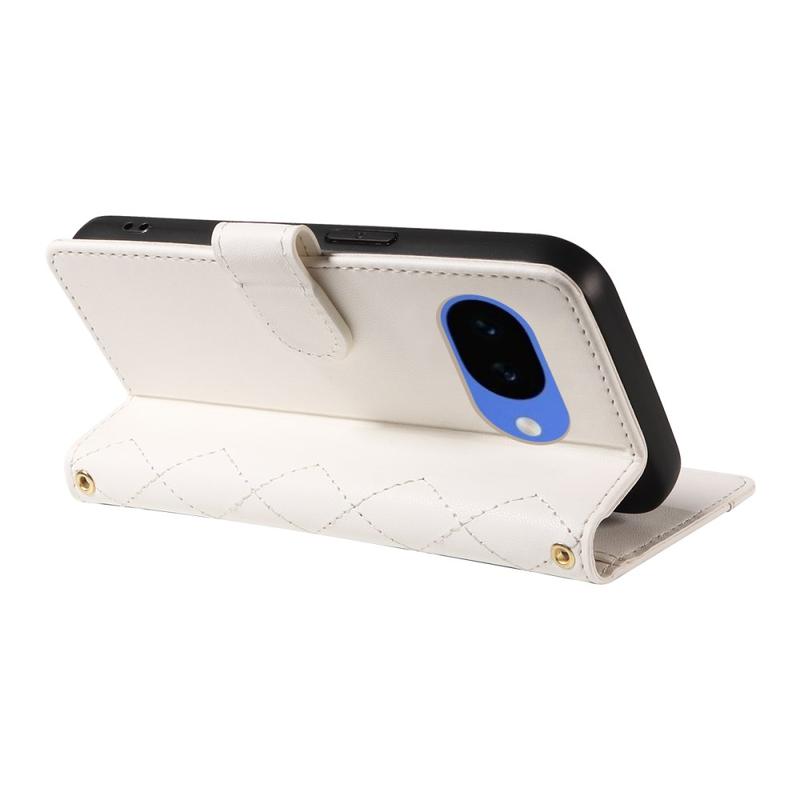 Custodia a portafoglio trapuntata di lusso con tracolla e cinturino per Google Pixel 10a - Copertura protettiva con motivo a rombi