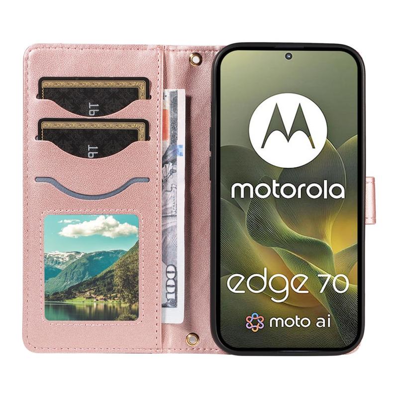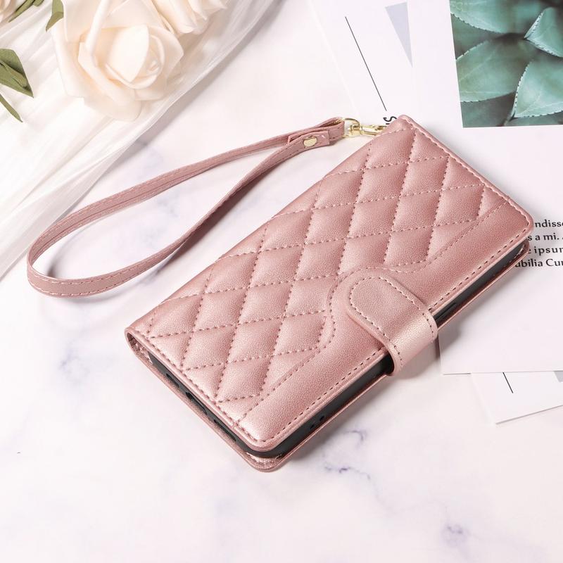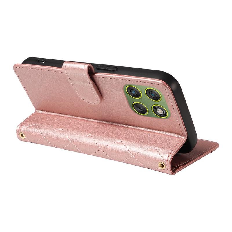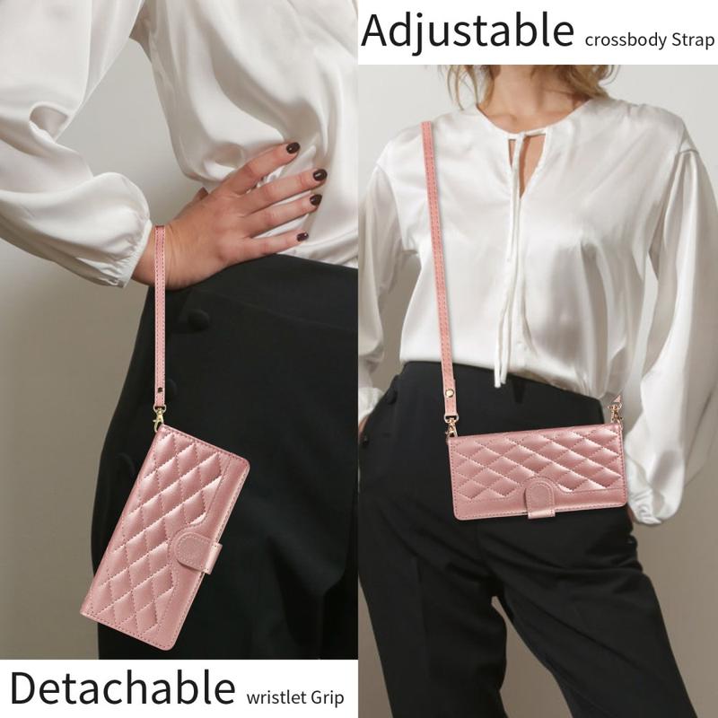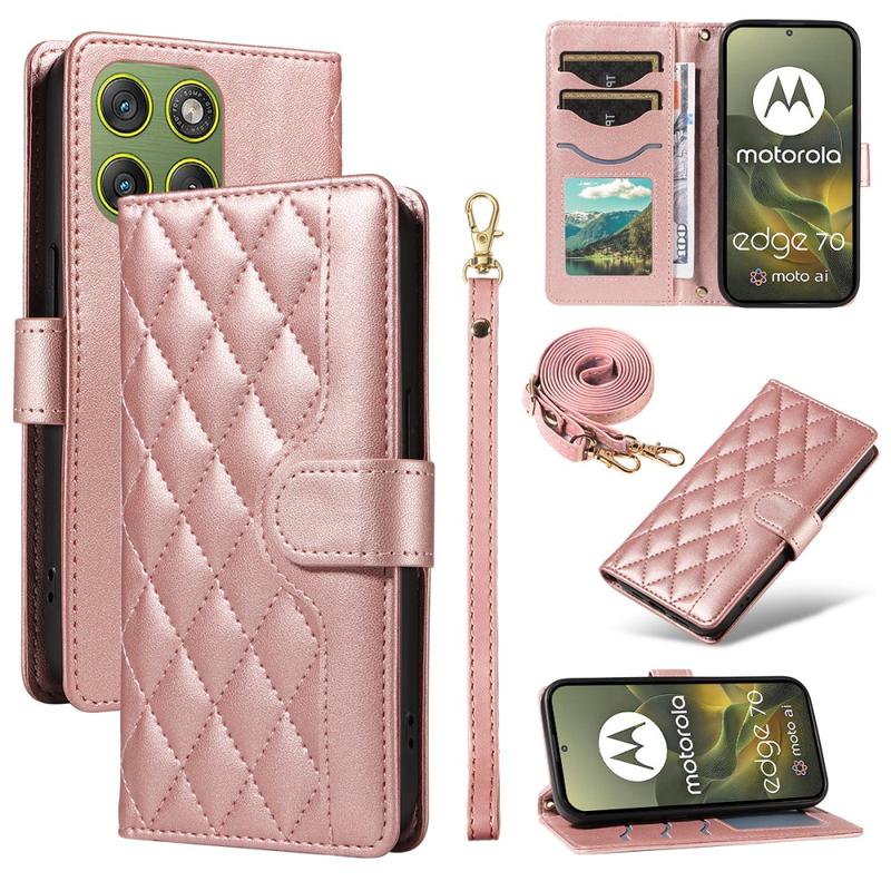 Custodia a portafoglio trapuntata di lusso con tracolla e cinturino per Motorola Edge 70 - Copertura protettiva con motivo a rombi