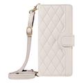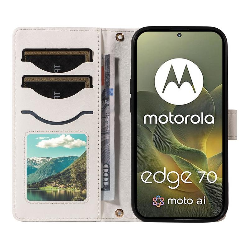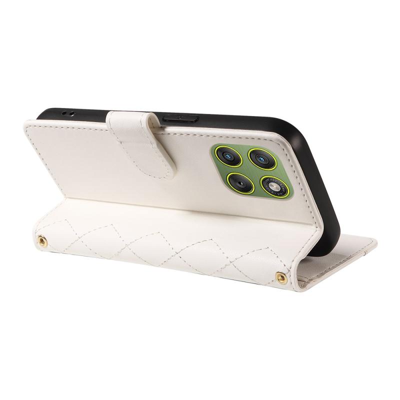 Custodia a portafoglio trapuntata di lusso con tracolla e cinturino per Motorola Edge 70 - Copertura protettiva con motivo a rombi